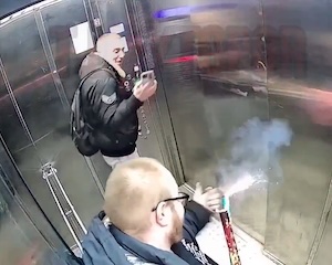 【動画】エレベーターの中で花火を発射するクソ馬鹿がロシアで撮影される。