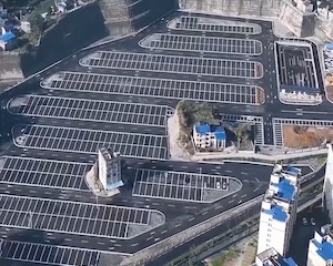 【動画】中国の大きな駐車場にポツンポツンと一軒家。