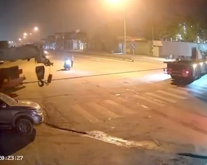 【動画】大型車の牽引ケーブルに突っ込んだバイカーが頭部を失ってしまう事故。