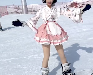 【動画】スカートで滑るコスプレスノーボーダーがスキーヤーと激突す···